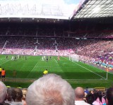 Inside the atmosphere was tremendous. Old Trafford was packed and I saw dads, moms and kids waving and cheering for every goal, no matter who scored. Everyone was just happy to be .. happy.