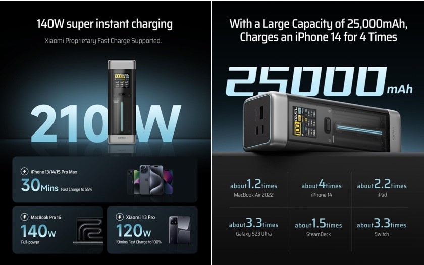 CUKTECH, an integral member of the Xiaomi ecosystem, has announced the launch of the CUKTECH 20, a ground-breaking 140W 25000mAh power bank that sets new standards for high-power, swift charging, and modern design. This power bank is engineered to cater to the demanding charging needs of today’s technology users, making it an essential companion for professionals, gamers, and travellers alike.